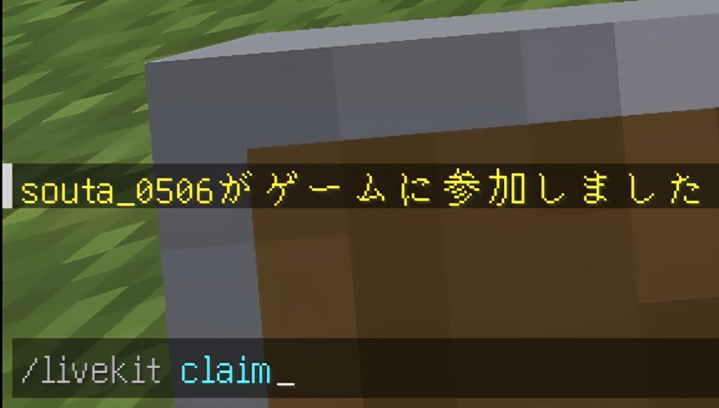 3.この画面になったらminecraftでチャット欄に下のコマンドを打ちこんでください